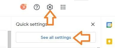 1. Click the gear icon in Gmail and select “See all settings” from the Quick settings menu.
